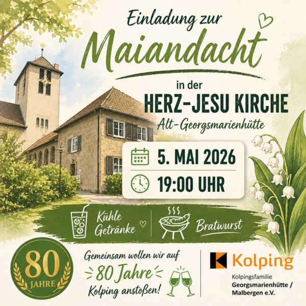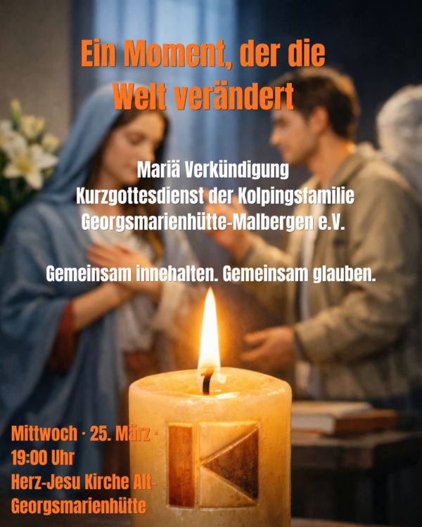 Ein Moment, der die Welt verändert Am Mittwoch, den 25. März, lädt die Kolpingsfamilie Georgsmarienhütte-Malbergen e.V. herzlich zu einem besonderen Kurzgottesdienst anlässlich von Mariä Verkündigung ein. In einer Zeit, in der vieles laut, schnell und unübersichtlich ist, möchten wir gemeinsam… Weiterlesen →